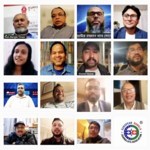ভার্চুয়াল বৈঠকে ইউরোপের বিভিন্ন দেশ থেকে বাংলা সংবাদ মাধ্যমের সাংবাদিকগণ প্রায় আড়াই ঘন্টার যাবত বৈঠক করেন। উপস্থিত সকলেই হাত তোলে এবং মৌখিক ভাবে সমর্থনের মাধ্যমে ভোটাধিকার প্রয়োগ করেন।