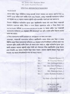বিবৃতিতে আরো বলা হয়, ‘সংবিধানের ১০৬ অনুচ্ছেদ অনুযায়ী মহামান্য রাষ্ট্রপতি ০৮ আগস্ট, ২০২৪ সুপ্রীম কোর্টের আপীল বিভাগের মতামত চাওয়ার প্রেক্ষিতে আপীল বিভাগ এই মতামত দিয়েছিলেন।’