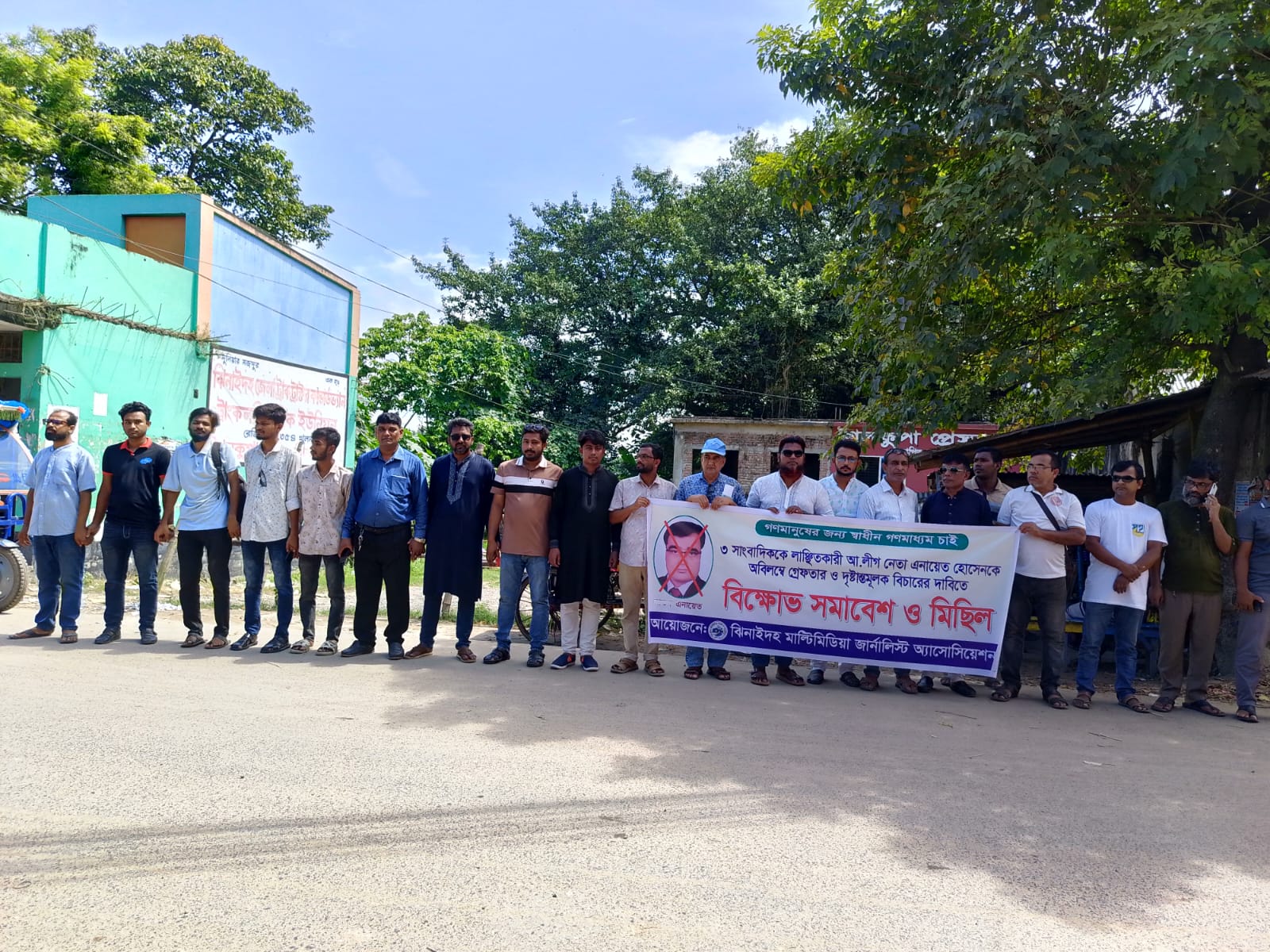 বক্তারা বলেন, ‘সাংবাদিকের কাজে বাঁধা ও লাঞ্ছিত ঘটনায় আমরা তীব্র নিন্দা ও প্রতিবাদ জানাচ্ছি। সংবাদকর্মীরা পেশাগত কাজে তথ্য সংগ্রহের জন্য যেকোনো প্রতিষ্ঠানে যেতে পারে। এসময় বহিরাগত আওয়ামী লীগ নেতা উল্টো অভিযোগ করে সাংবাদিকদের সঙ্গে যে আচরণ করেছেন তা পেশাগতভাবে সাংবাদিকদের মধ্যে নিরাপত্তাহীনতা সৃষ্টি হয়েছে। অবিলম্বে সাংবাদিক নিপীড়ণকারী এনায়েত হোসেনকে আইনানুগ দৃষ্টান্তমূলক বিচারের দাবি জানান তারা।