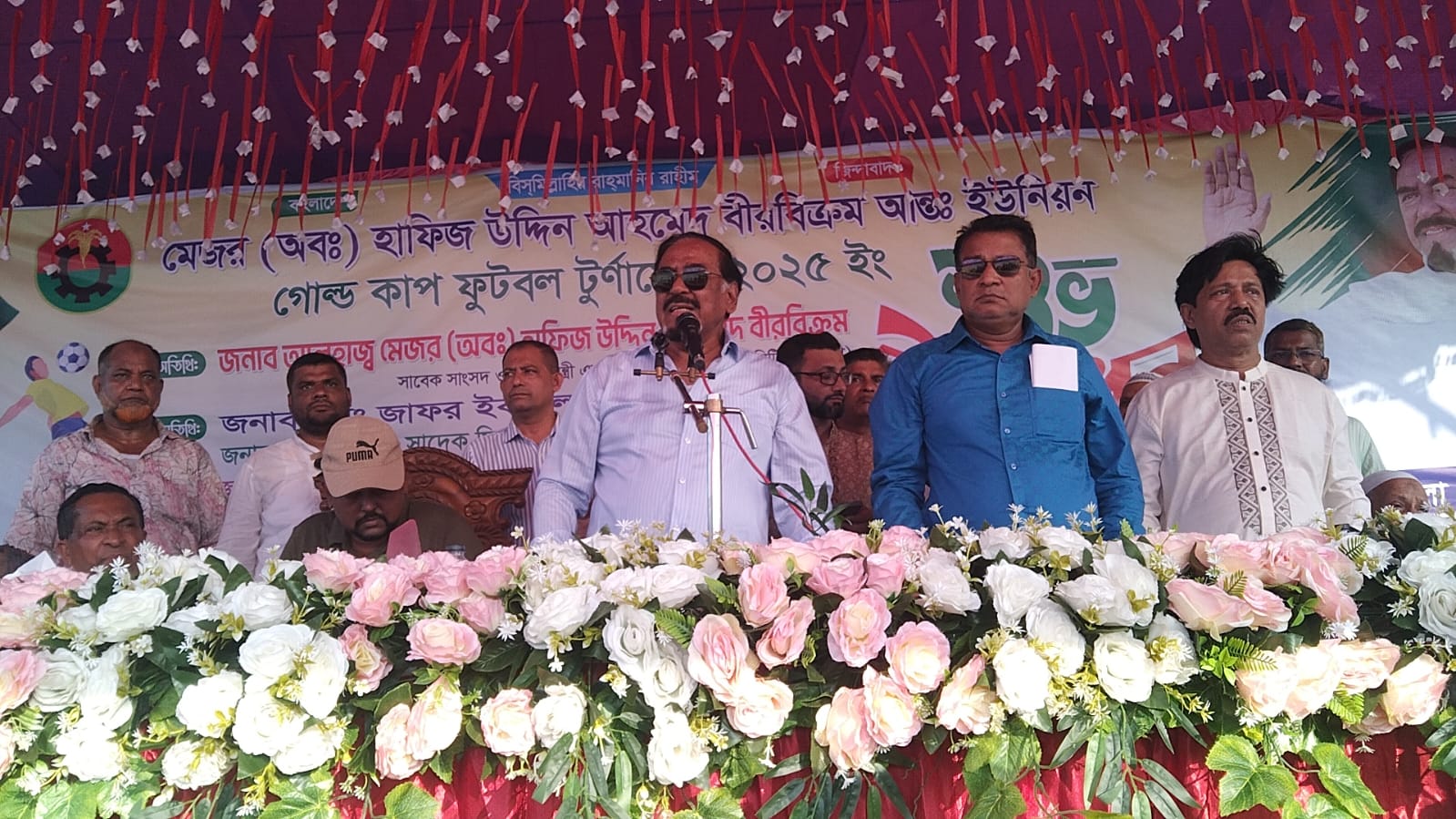 বুধবার (১৫ অক্টোবর) বিকেলে ভোলার লালমোহন উপজেলা বিএনপি ও পৌরসভা বিএনপির অঙ্গ সহযোগী সংগঠনের আয়োজনে মেজর হাফিজ উদ্দিন বীর বিক্রম স্টেডিয়াম মাঠে মেজর (অব:) হাফিজ উদ্দিন আহমেদ বীরবিক্রম আন্তঃ ইউনিয়ন গোল্ডকাপ ফুটবল টুর্নামেন্টের প্রধান অতিথি হিসেবে উদ্বোধনী বক্তব্যে এসব কথা বলেন তিনি।