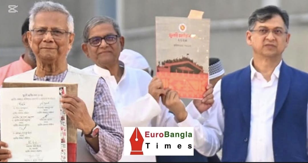 বক্তব্যের আগে প্রধান উপদেষ্টাসহ সনদে স্বাক্ষর করেন বিএনপি, জামায়াতসহ ২৫টি রাজনৈতিক দলের নেতারা।