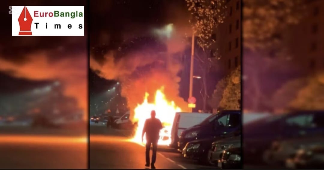 পার্ক করা অবস্থায় গাড়িটিতে আকস্মিক আগুন ধরে যায় এবং আগুনের লেলিহান শিখা প্রায় এক মিটার উঁচু ছিল