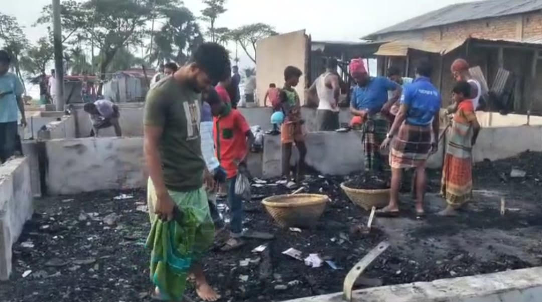 তজুমদ্দিনে আগুনে পুড়লো ১৯ মাছের আড়ৎ