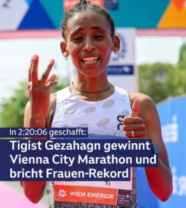 মহিলাদের মধ্যে, ইথিওপিয়ান টিগিস্ট গেজাহাগন ২:২০:০৬ সময়ে একটি নতুন ভিয়েনা রেকর্ড গড়েন।