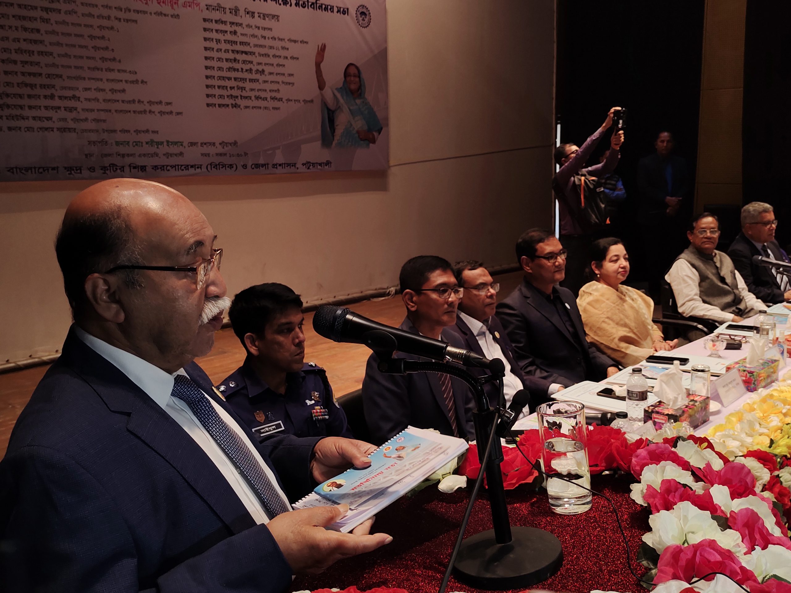 পটুয়াখালীল জেলা প্রশাসক মোঃ শরীফুল ইসলাম এর সভাপতিত্বে আয়োজিত মতবিনিময় সভায় শিল্প সচিব জাকিয়া সুলতানা, পরিকল্পনা কমিশন সদস্য আবদুল বাকী, বিসিক চেয়ারম্যান মাহবুবর রহমান, সাবেক চীফ হুইপ আ স ম ফিরোজ, সংসদ সদস্য এস এম শাহজাদা, মহিলা সংসদ সদস্য কাজী কানিজ সুলতানা হেলেন, বাংলাদেশ আওয়ামী লীগের সাংগঠনিক সম্পাদক এড আফজাল হোসেন, পটুয়াখালী পুলিশ সুপার মোঃ সাইদুল ইসলাম, জেলা পরিষদ চেয়ারম্যান এড. হাফিজুর রহমান, জেলা আওয়ামী লীগের সভাপতি কাজী আলমগীর হোসেন, সাধারণ সম্পাদক ভিপি আব্দুল মন্নান, পৌর মেয়র মহিউদ্দিন আহম্মেদ, সদর উপজেলা চেয়ারম্যান এড.গোলাম সরোয়ার সহ বিভিন্ন জেলার জেলা প্রশাসক, উপজেলা নির্বাহী অফিসার ও জনপ্রতিনিধিরা উপস্থিত ছিলেন।